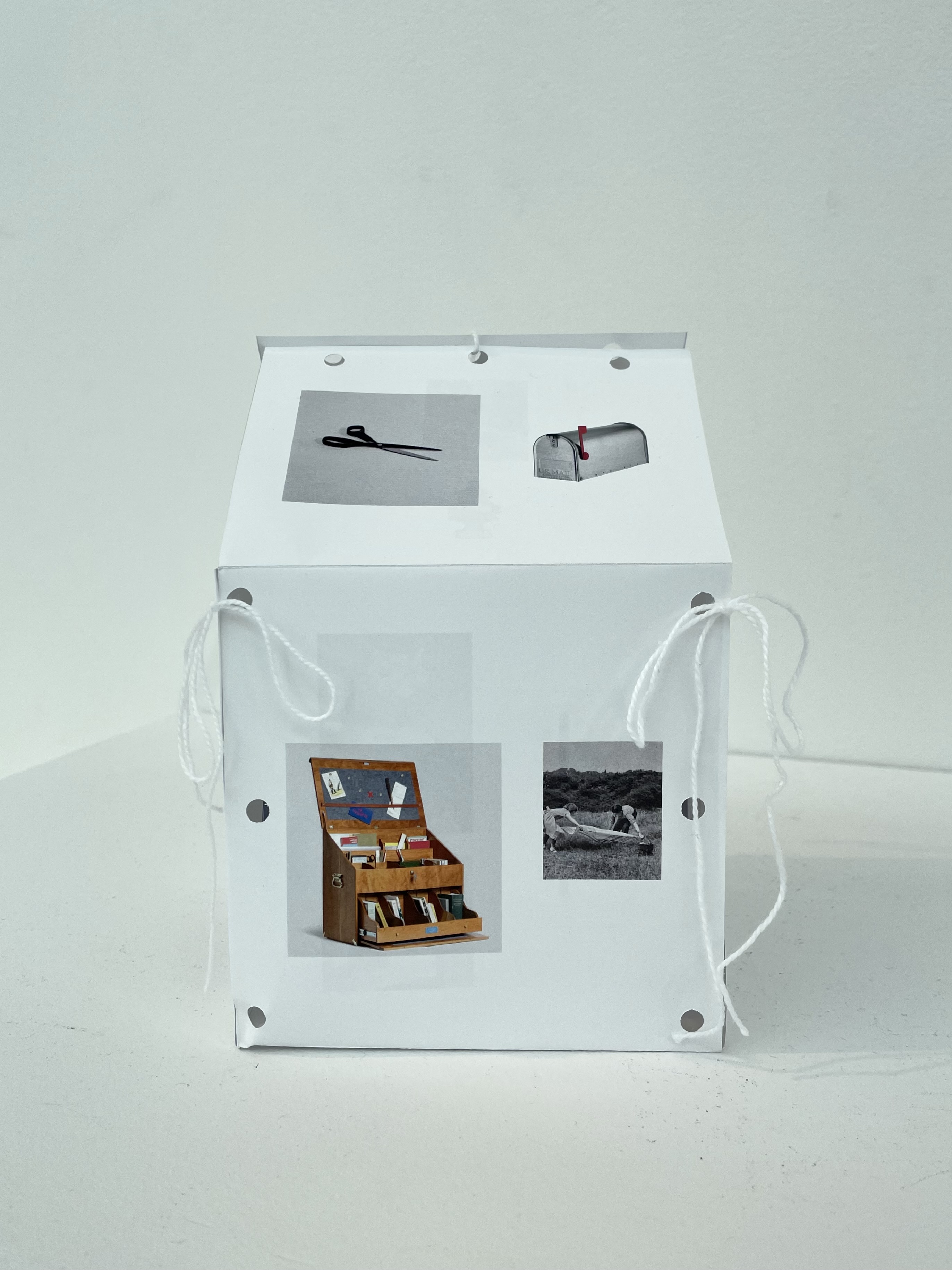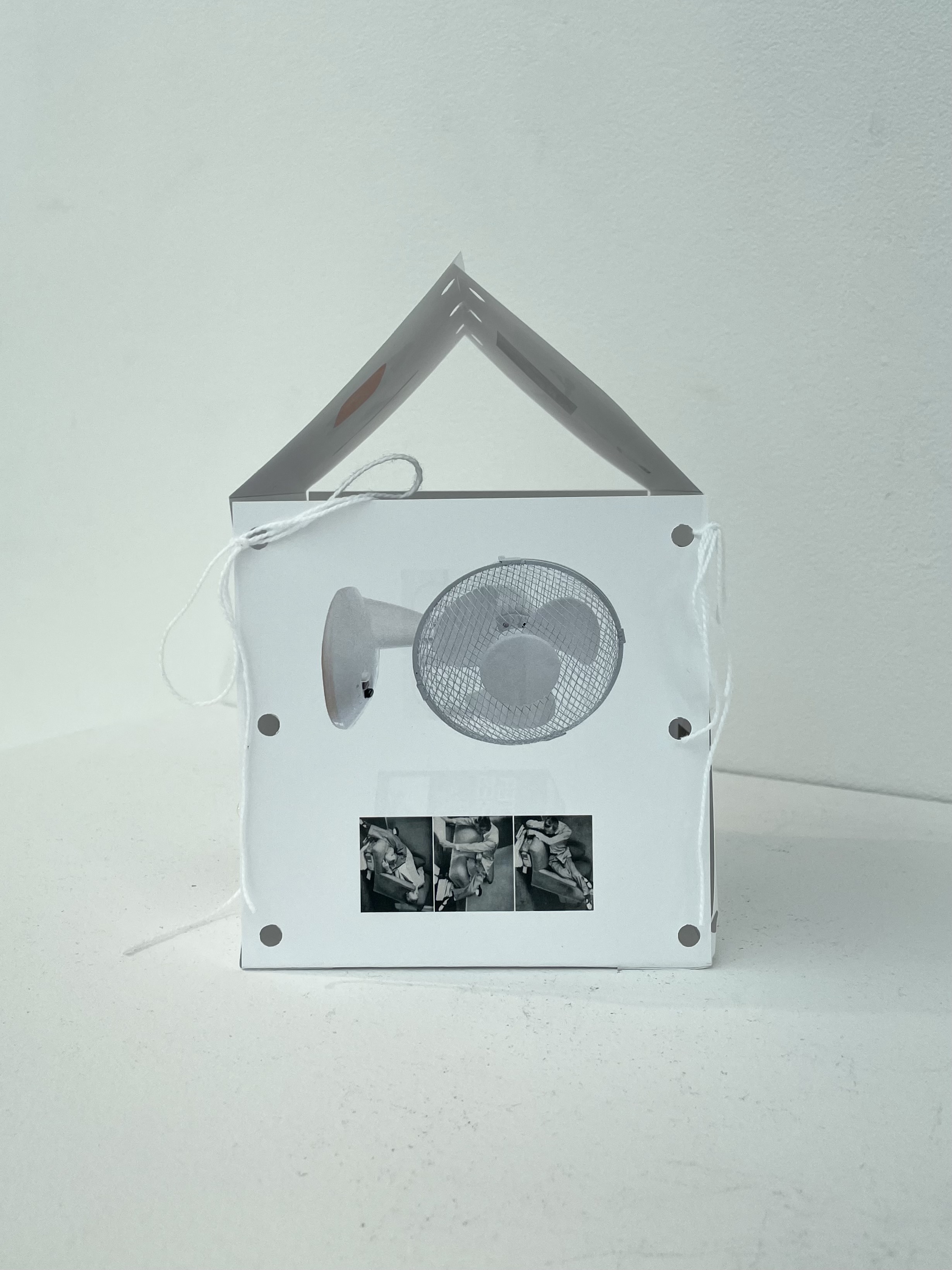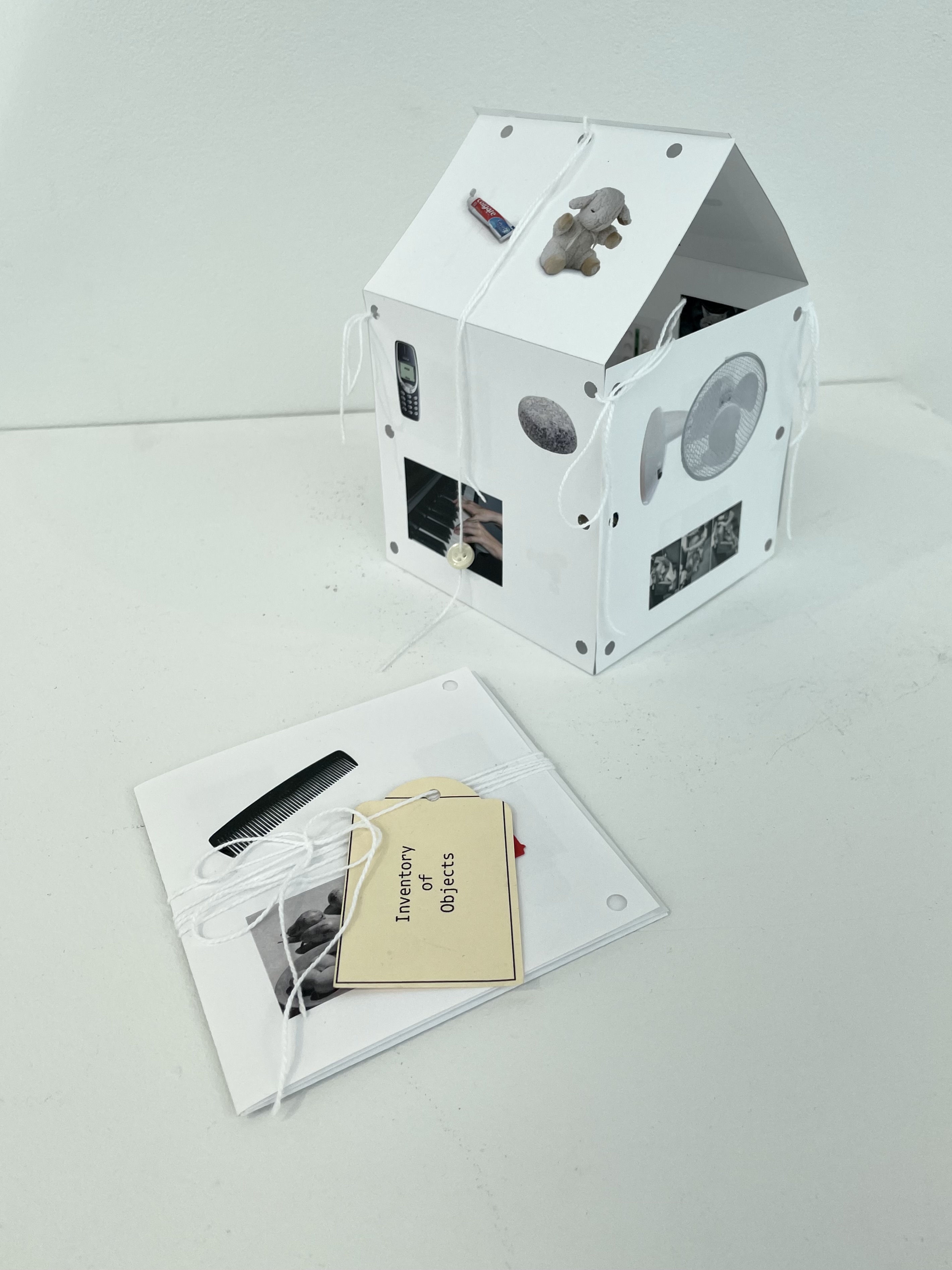 A small fold out book about our relationship to objects, can be secured into a house shape with string for display.